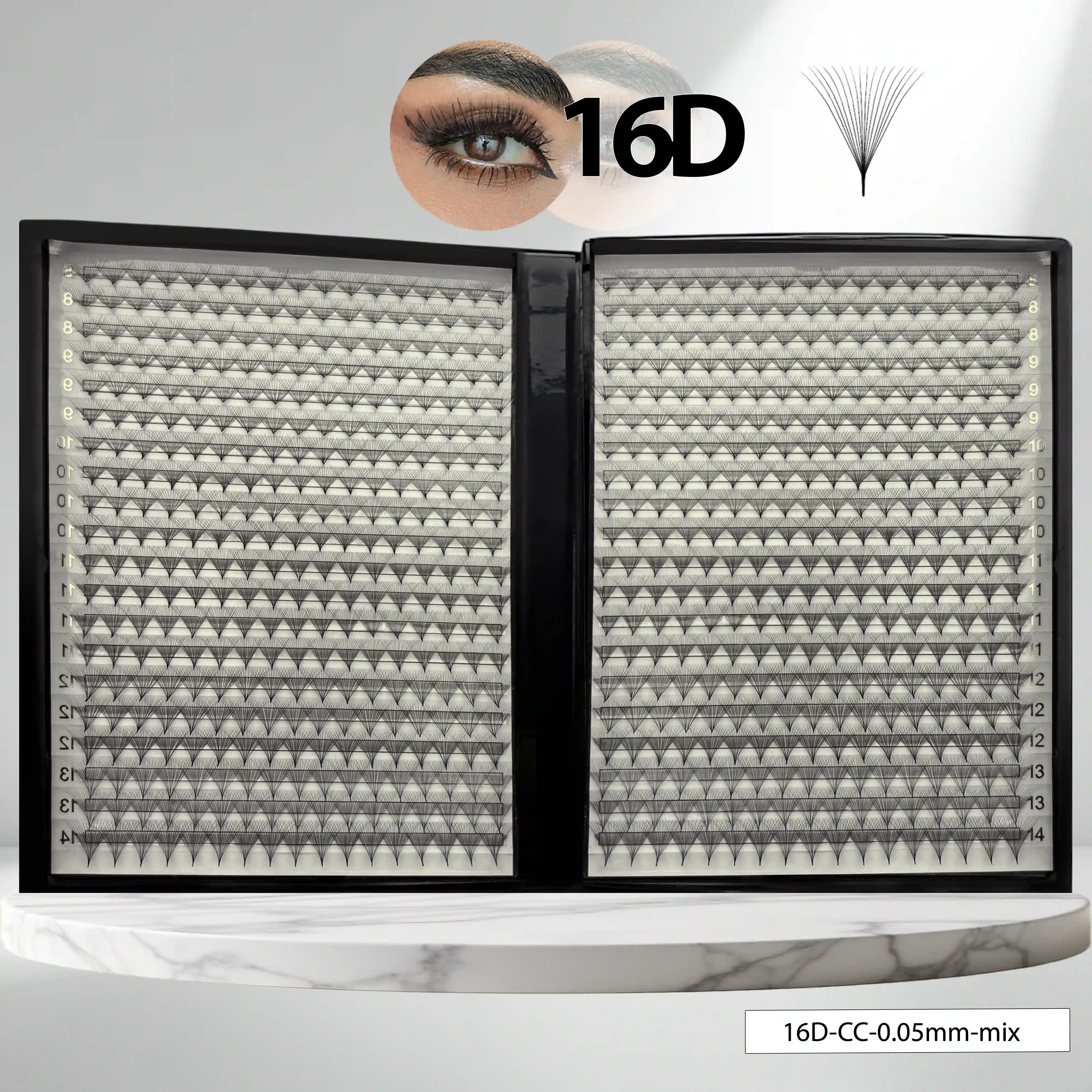 Rzęsy 16D ok.720 szt. CC skręt 0,05 mm mix czarne 40 pasków gotowe kępki