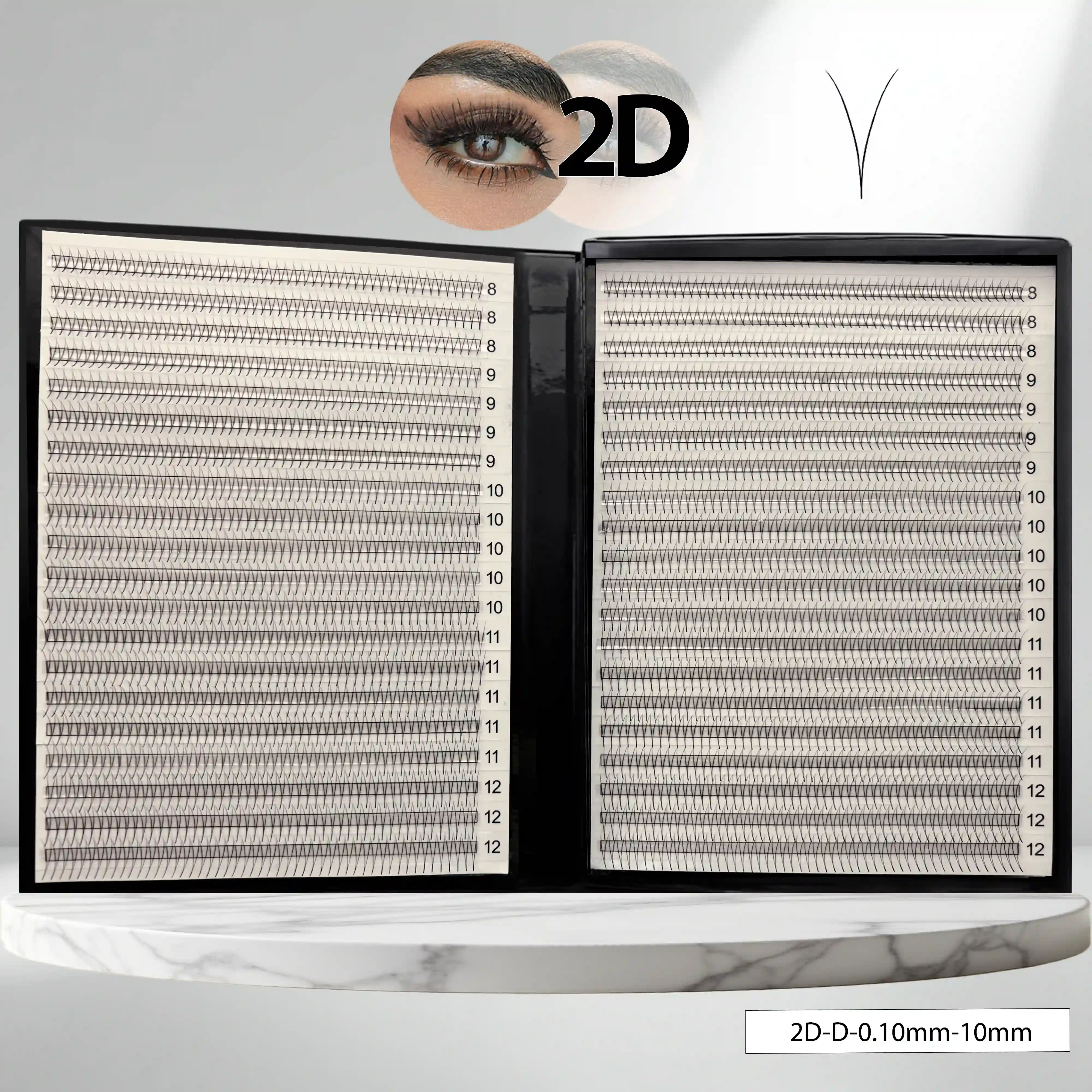 Rzęsy 2D ok.1080 szt. D skręt 0,10 mm 10 mm czarne 40 pasków gotowe kępki