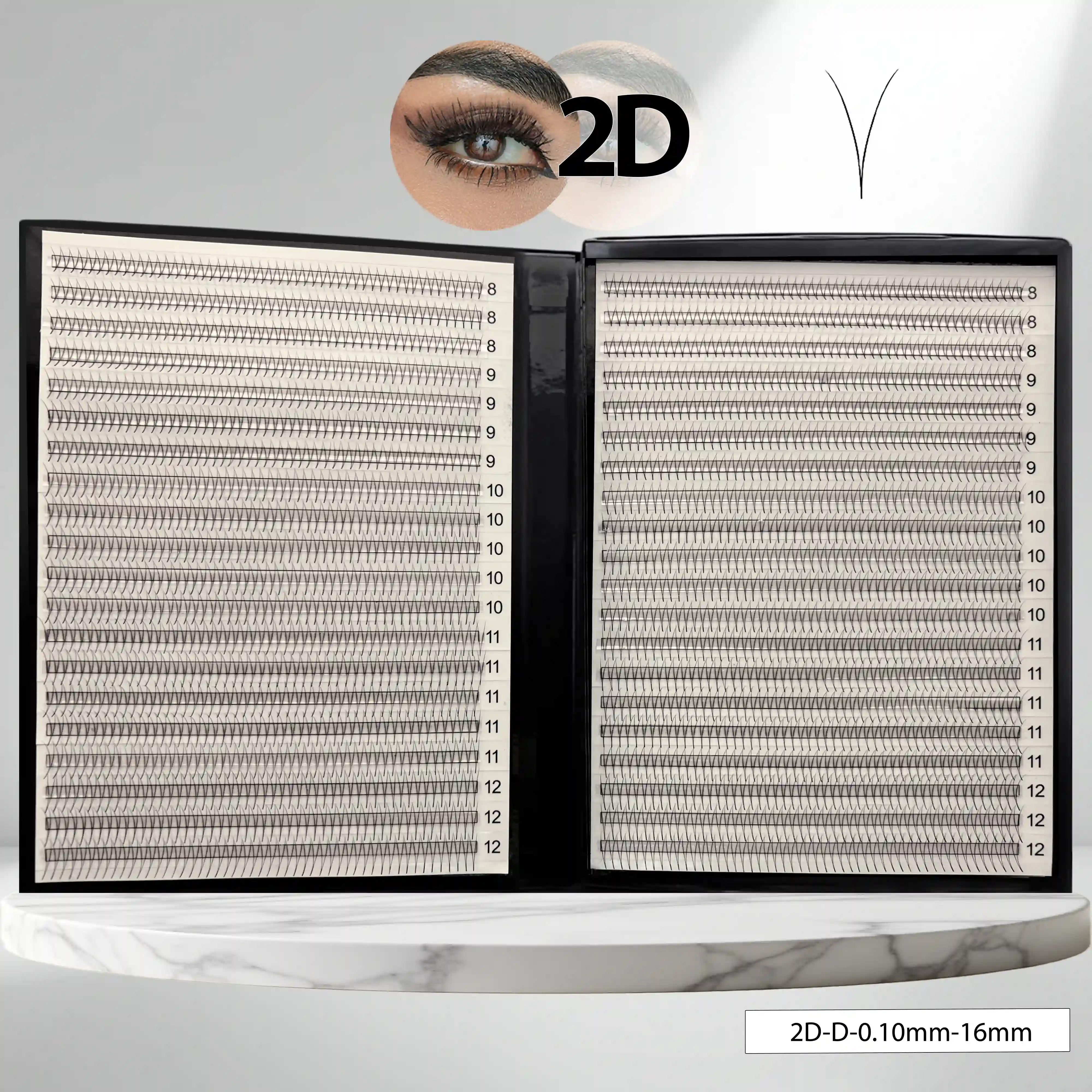 Rzęsy 2D ok.1080 szt. D skręt 0,10 mm 16 mm czarne 40 pasków gotowe kępki