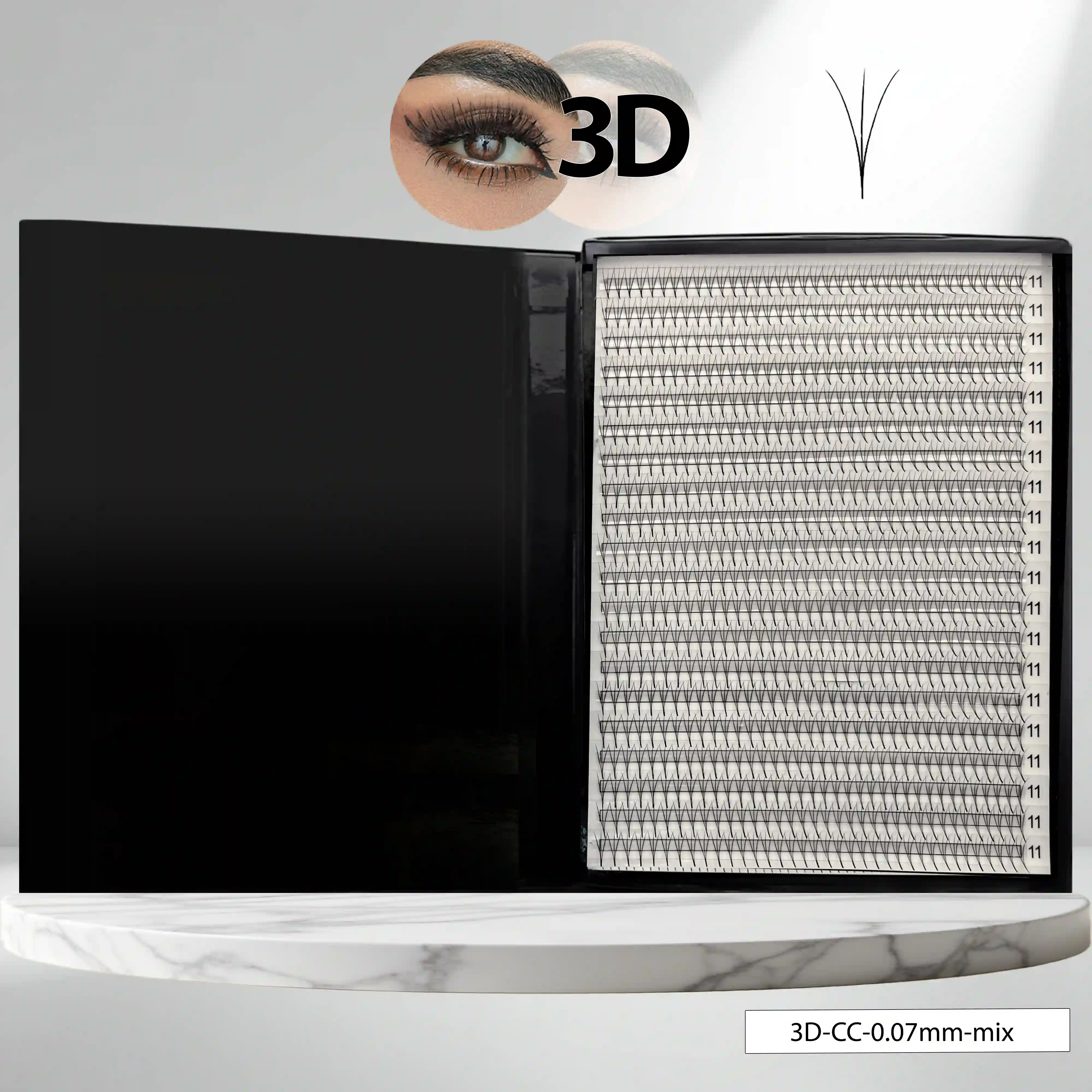 Rzęsy 3D ok.540 szt. CC skręt 0,07 mm mix czarne 20 pasków gotowe kępki