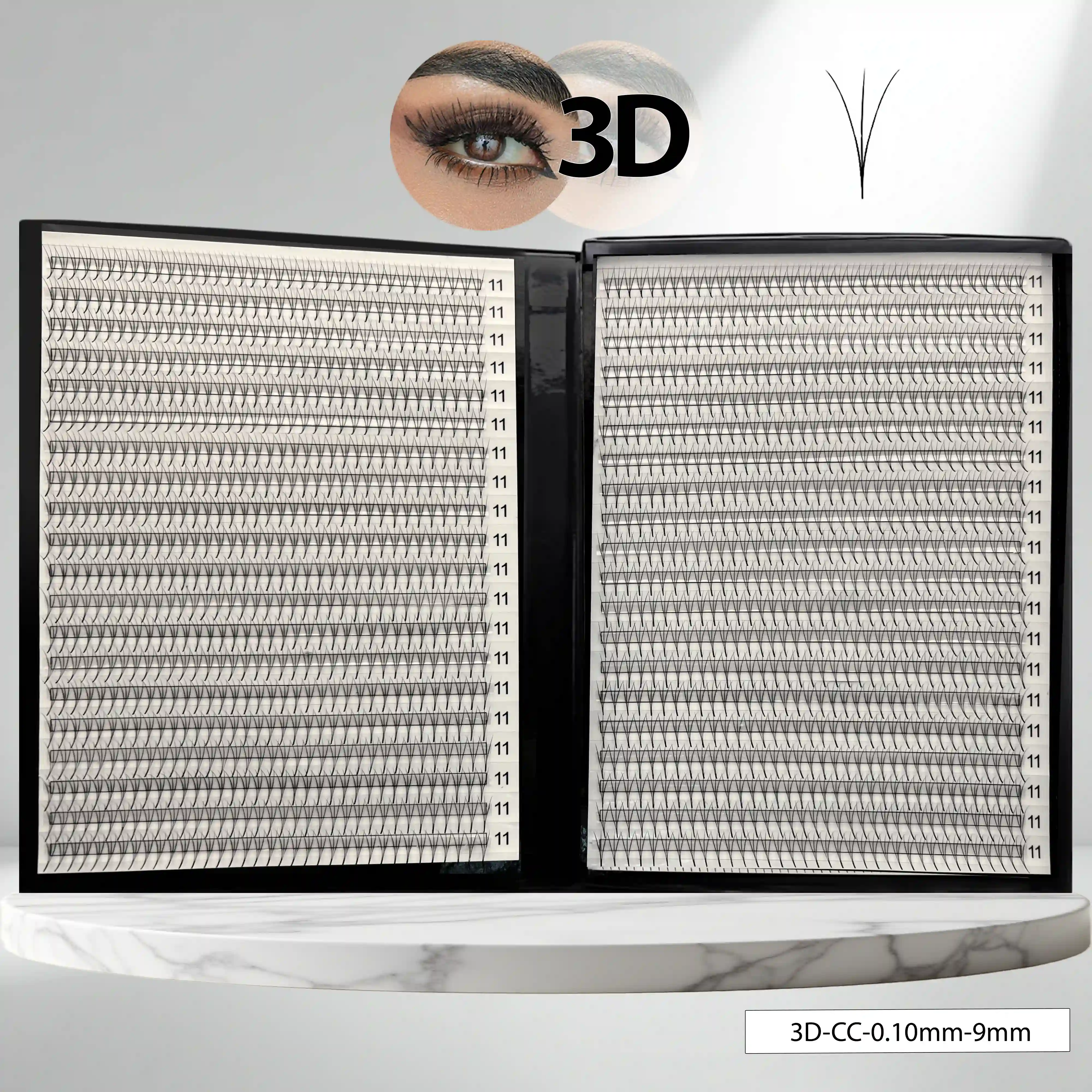 Rzęsy 3D ok.1080 szt. CC skręt 0,10 mm 9 mm czarne 40 pasków gotowe kępki