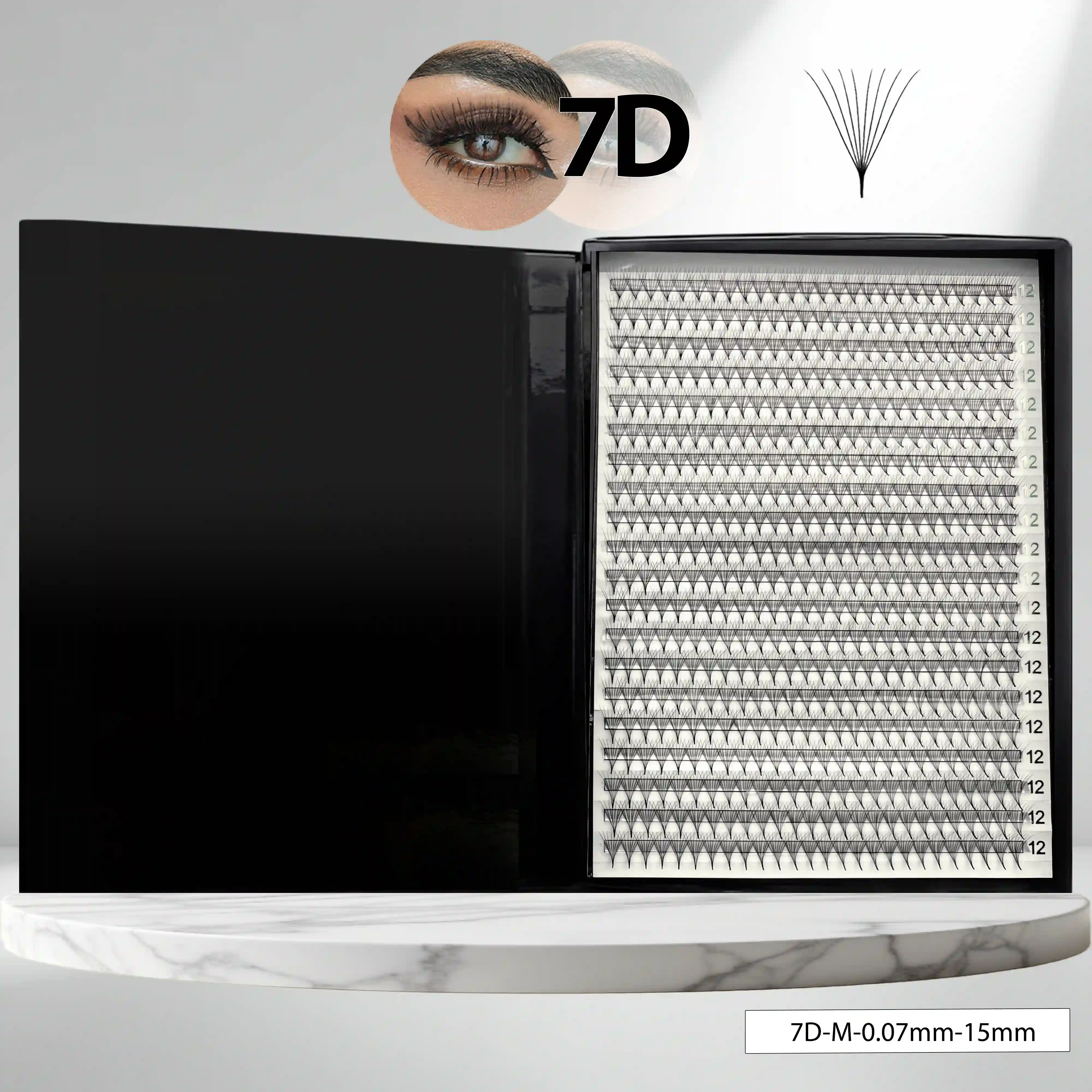 Rzęsy 7D ok.500 szt. M skręt 0,07 mm 15 mm czarne 20 pasków gotowe kępki