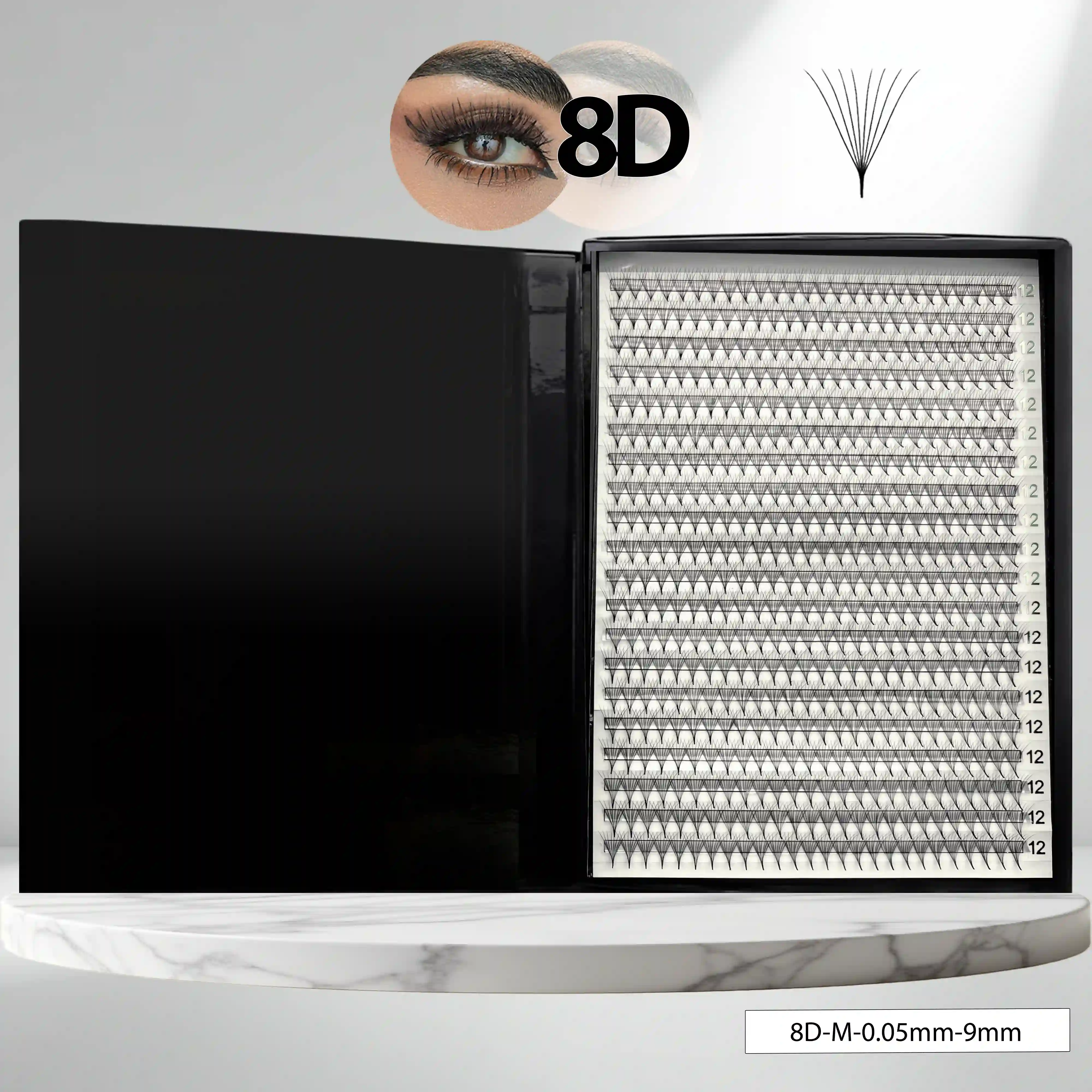 Rzęsy 8D ok.500 szt. M skręt 0,05 mm 9 mm czarne 20 pasków gotowe kępki